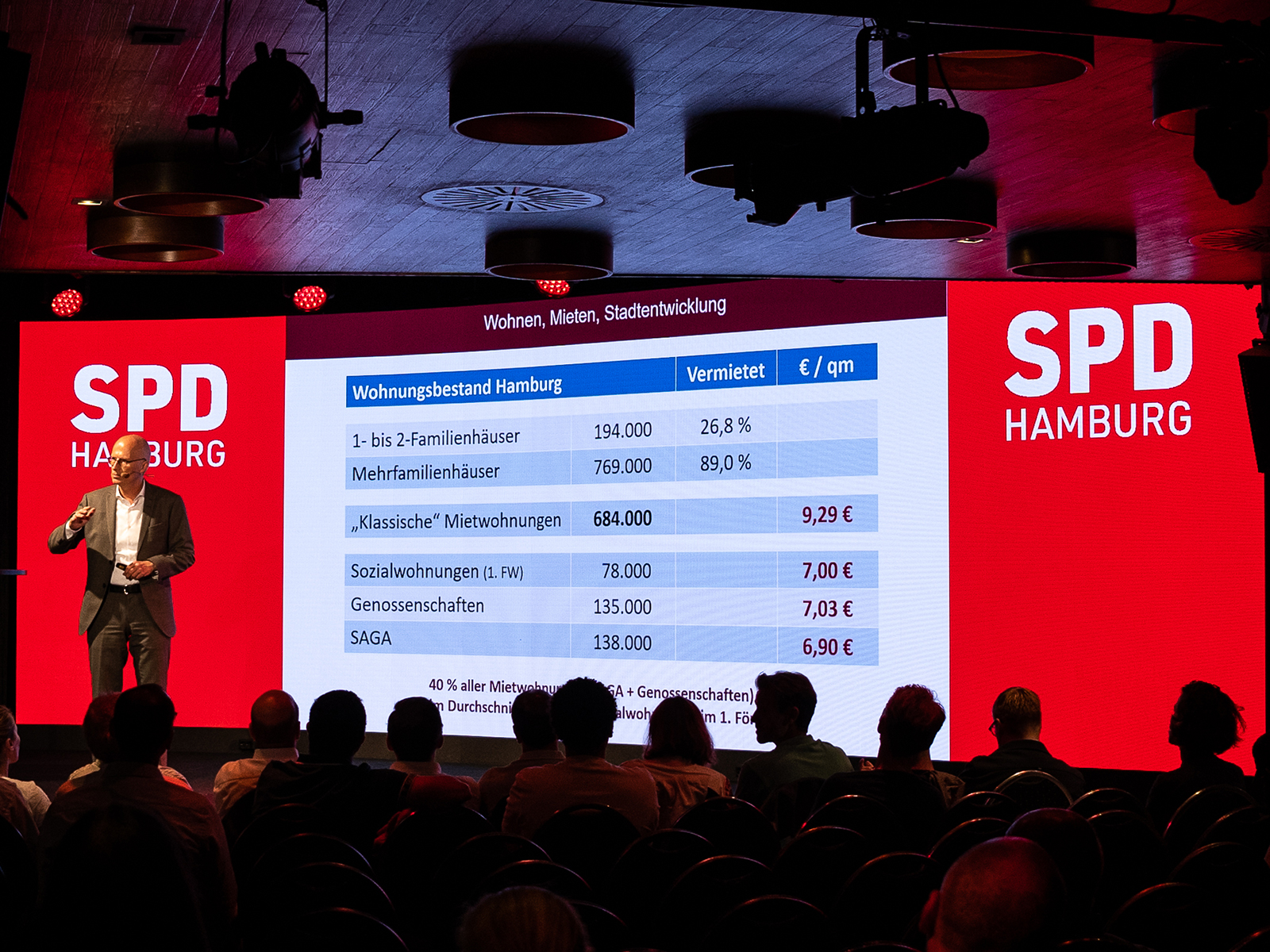 Die Themen, welche die Menschen besonders bewegen, sind auch in Altona Wohnen, bezahlbare Mieten und der Verkehr. Bildung und Sicherheit spielen ebenfalls eine Rolle für den Alltag der Menschen, wie die digitale Umfrage im Saal ergab. Dank der Anstrengungen im Wohnungsbau seit 2011 sei es in Hamburg gelungen, den Mietpreisanstieg stärker als anderswo zu begrenzen, was auch weiterhin Ziel des Senats sei. Auch zu kontroversen Themen wie dem durch die Deutsche Bahn geplanten Neubau der Sternbrücke bezog der Bürgermeister Stellung: „Es ist unsere Aufgabe, eine moderne und fortschrittliche Stadt zu bleiben.“ Hamburg dürfe nicht zu einem Museum werden und ebensowenig den Ausbau eines leistungsfähigen Schienennetzes blockieren, das für einen erfolgreichen Klimaschutz benötigt wird.